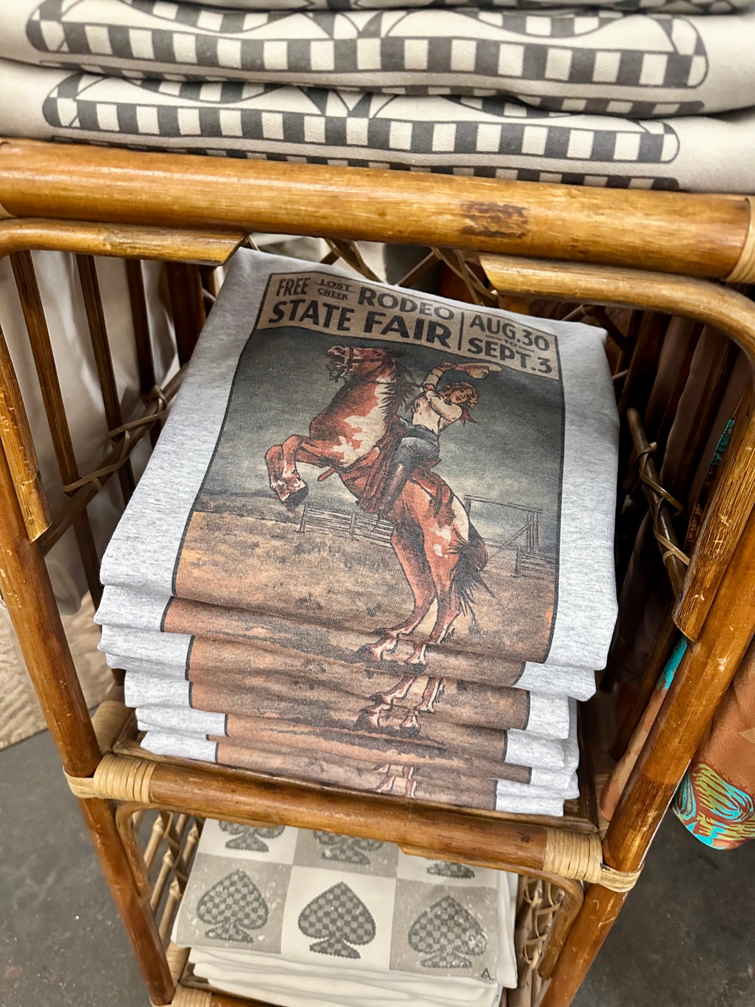 Inspired by classic rodeo posters, this vintage graphic crewneck brings a nostalgic Western vibe to your everyday wardrobe. The unisex fit makes it a go-to for anyone who loves laid-back style with a little grit. Printed on a soft, ash grey sweatshirt, it’s perfect for layering or wearing solo—cozy, cool, and effortlessly Western.